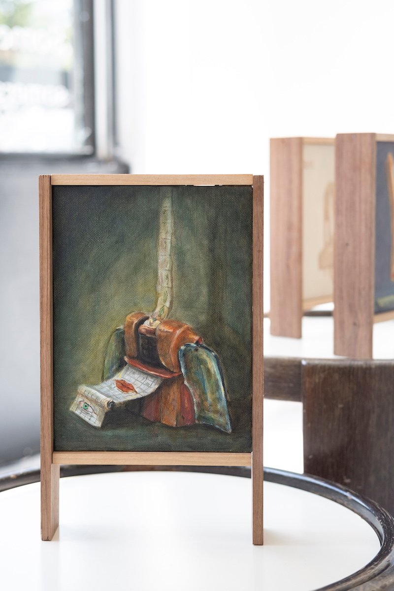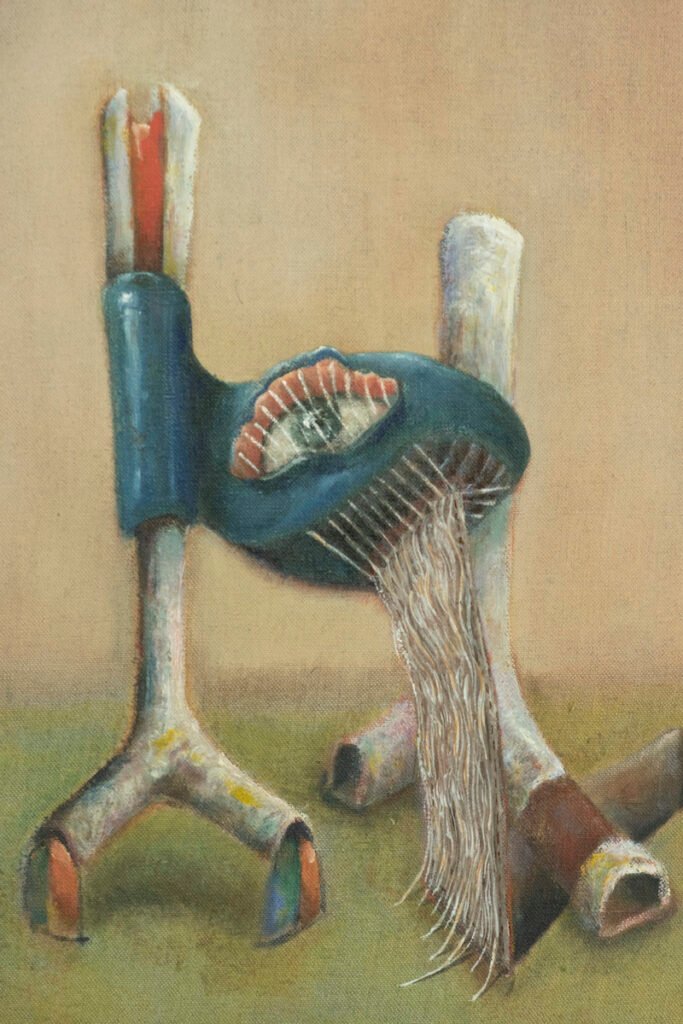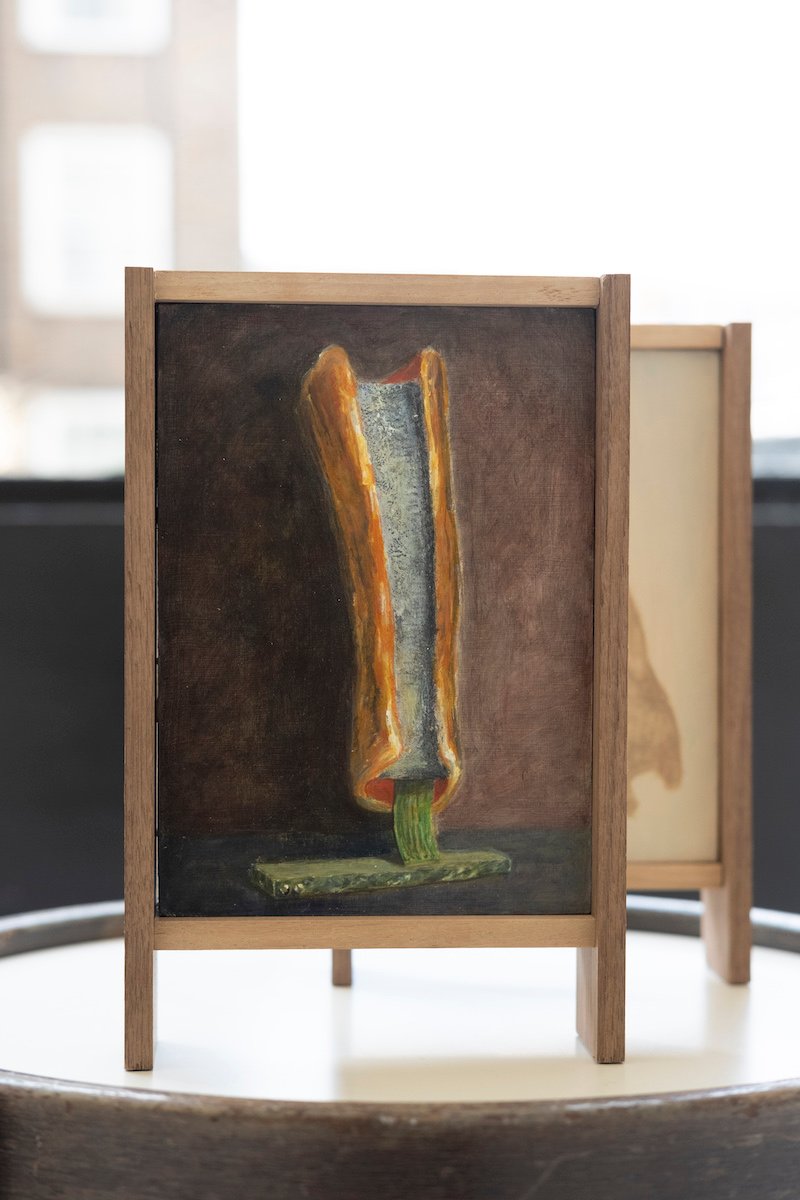 Dylan Doe is a London-based painter and musician whose work delves into contemporary life, exploring themes of chance encounters, compulsions, hybrid forms, and devotional objects. His paintings, which weave together disparate elements, transform the familiar into the uncanny. Doe holds a degree in History from the University of Manchester and completed his Master’s at the Cambridge School of Art, where he was awarded an AHRC scholarship. He also pursued postgraduate studies at Goldsmiths University’s School of Design. His works have been featured in Artnet and FAD Magazine, and are held in private collections across the UK, Italy, and China.